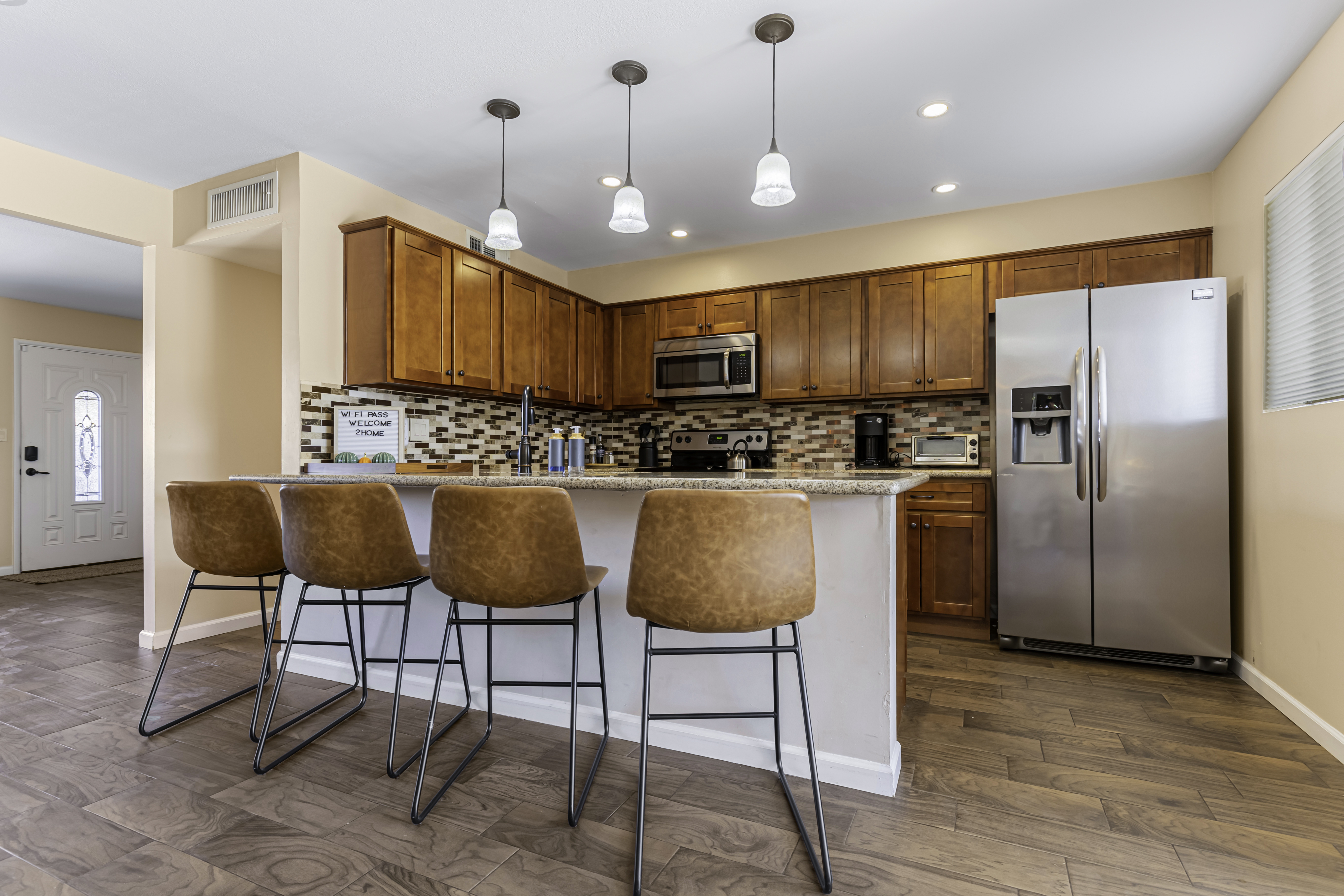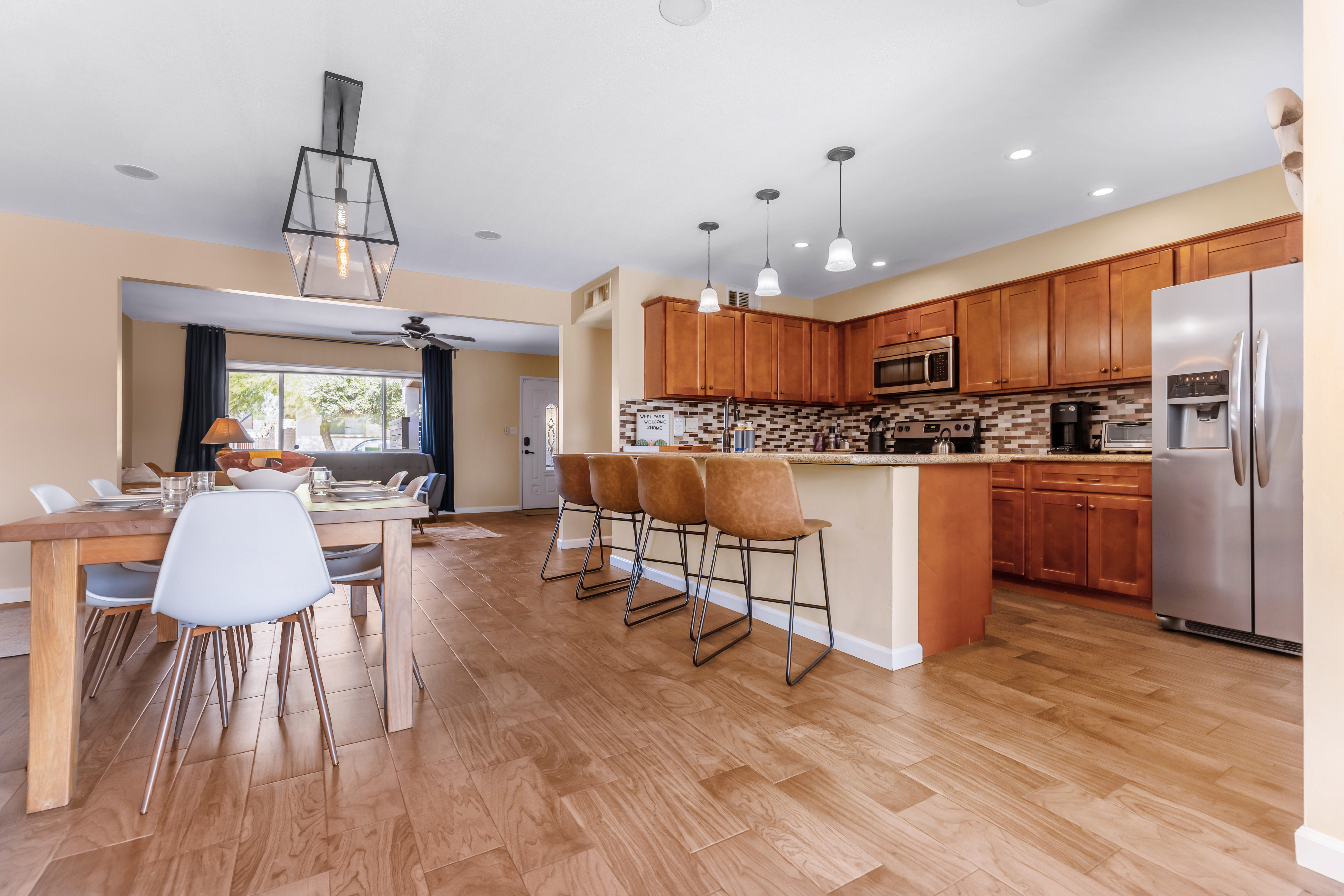 Pool: Pool Heat Add-on: $0/day (recommended for stays Nov–Mar) The pool is available year-round, and a heater is available for winter months. Swim at your own risk, and please use the skimmer for leaves if needed. The pool is cleaned weekly. 🕑 Early check-in or late check-out may be available upon request and subject to availability. 🧺 Washer and dryer are available with a starter supply of complimentary detergent. The kitchen is fully equipped with all the essentials for home-cooked meals. Long-Term Guests: Perfect for professionals or families in transition, our space is equipped with everything needed for an extended stay, from workspaces to a fully stocked kitchen. 📜 House Rules Snapshot: 🔐 Only registered guests are allowed on the property. 🎧 Please observe quiet hours from 9 PM to 9 AM to respect our neighbors. ❌ No parties or events are allowed. 🚬 This is a non-smoking property. 🔢 Smoking is allowed in designated outdoor areas only. Dispose of cigarette butts in the large trash cans outside. ⚖️ Please respect the space. Guests are responsible for any damages caused during their stay. ⚡ Follow all fire safety guidelines posted in the property. 🛠️ Contact us immediately for any issues like broken items, maintenance problems, water leaks, or clogged drains. 🛑 We reserve the right to cancel your stay and remove you from the premises without a refund for violating these house rules. ⚖️ By booking this reservation, you agree to these house rules and hold yourself liable for any personal injuries that may occur during your stay. Pets: Pets are welcome upon pre-approval, and additional fees may apply. Parking: Ample parking available with garage and driveway spaces. ⛔ DO NOT PARK IN FRONT OF THE NEIGHBOR'S DRIVEWAY AT ANY TIME. Kitchen and Appliances: Please turn off the stove and outdoor grill after use. Additional Notes: Emergencies and Maintenance: For urgent issues, please contact us immediately. We’re here to make sure your stay is as smooth as possible. We’re excited to host you and provide a comfortable, convenient home for both work and leisure in beautiful Phoenix. Let us know if there’s anything you need!
