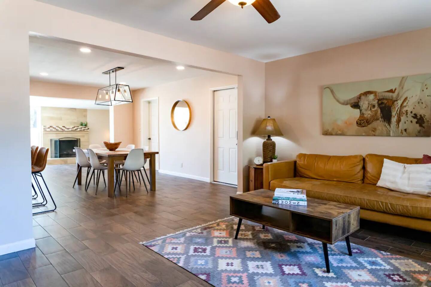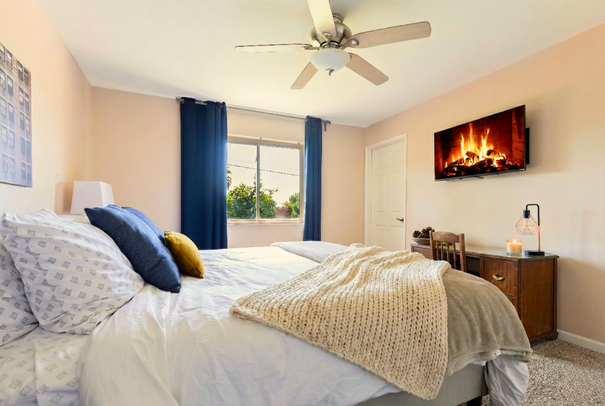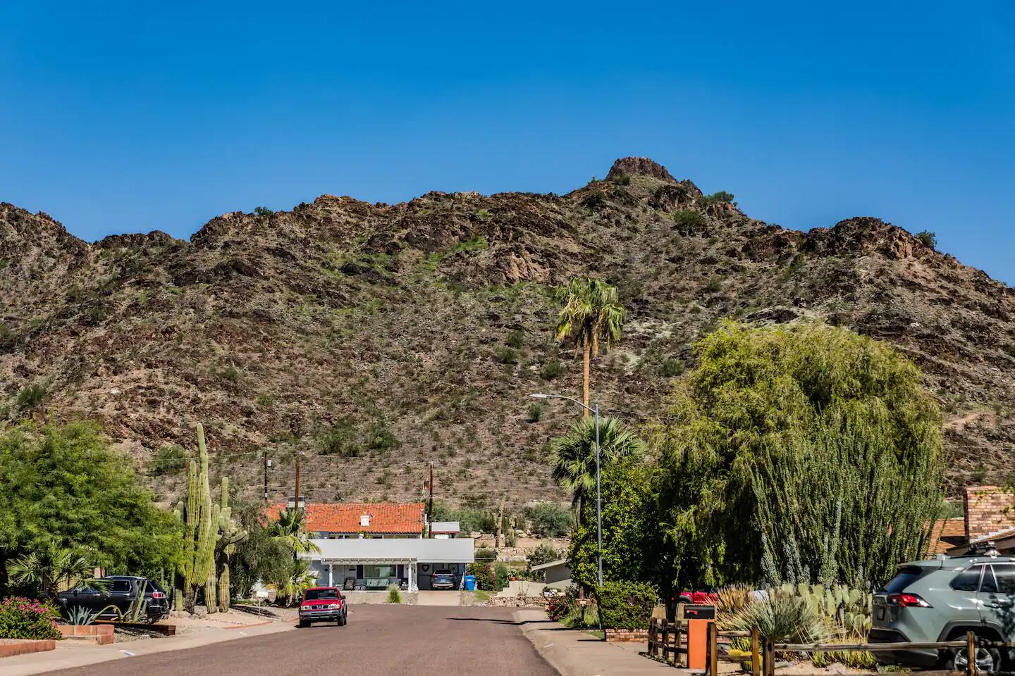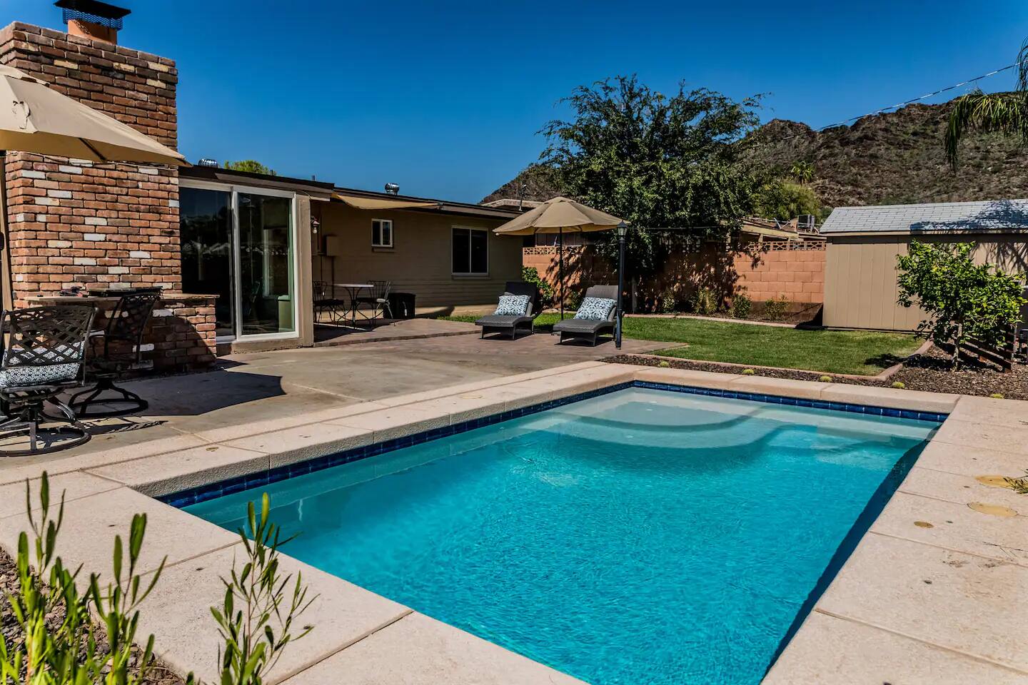 Escape the cold in this mountain-view oasis with a heated pool, fire pit, and space for the whole family. Perfect for holiday visits, staycations, or last-minute getaways. Hiking trails 1 mile away! This 3BR home has an open layout, high-speed WiFi, multiple desks, and is centrally located. 12 mi to airport, 10 mi to downtown, 5 mi to shops. Your cozy work-from-home base in Phoenix.