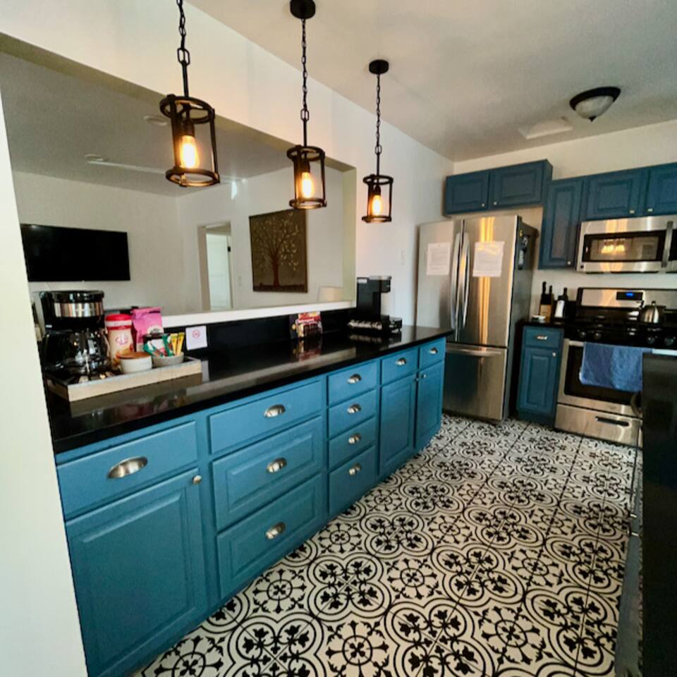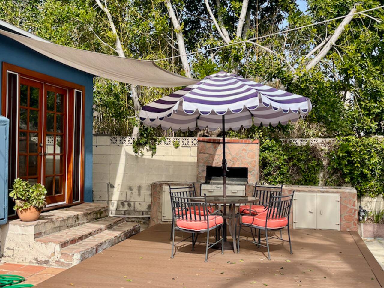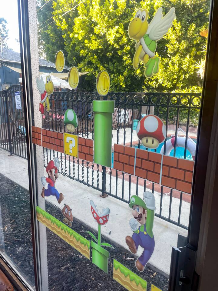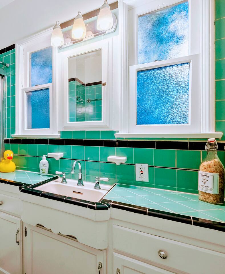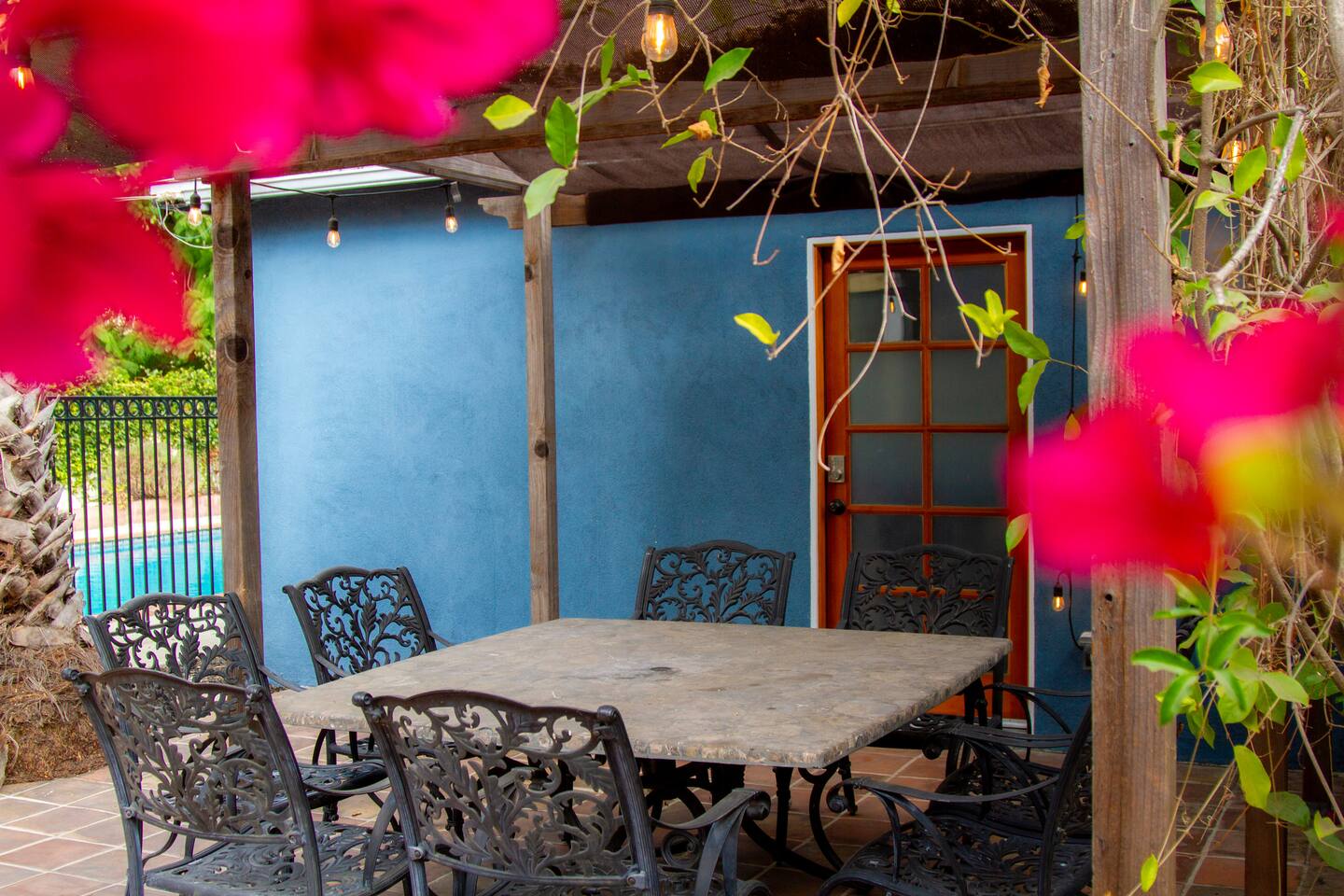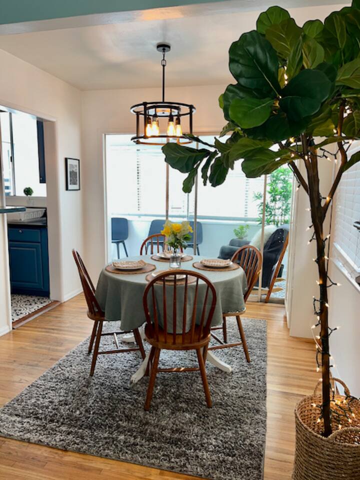 Relax. Connect. Have fun. This getaway features a separate game room with a full-sized pool table and games, a deck with an outdoor grill, and a private backyard with bean bag toss (located in the game room). This California Bungalow has 1,600 square feet of living space (1,200 square foot main house + 400 square foot game room), and is naturally bright with real hardwood floors, sunroom, updated kitchen, and bathrooms with vintage aqua and black tiles. Bedroom 1: King bed with private entrance to the deck and pool Bedroom 2: Queen bed Bedroom 3: Two twin beds Experience ultimate, snuggle comfort as all of the bedrooms have been recently upgraded with brand-new, top-of-the-line mattresses and microfiber bedding!! Fully equipped kitchen with breakfast bar Dishwasher, Oven, Microwave, and Stove Dining with seating for 5 (folding chair in the closet for 6) Outdoor dining area with seating for 8 Deck with outdoor gas grill or charcoal grill Private workspaces in the bedroom and in the game room. Outdoor seating lounge with beanbag toss. Large swimming pool with lounge chairs on sun deck Game room with pool table, vintage table-top Ms. Packman, Galaga, Dig Dug & more arcade games, 55-inch TV, sofa, and library Games, Books, Puzzles, Yo-Yo’s! Comfy reclining chair in the sunroom. Quiet reading/private time. High-Speed Wi-Fi & TV Central AC & Heating Washer/Dryer