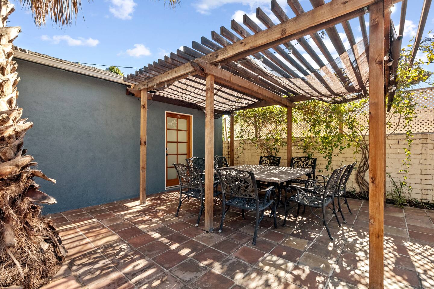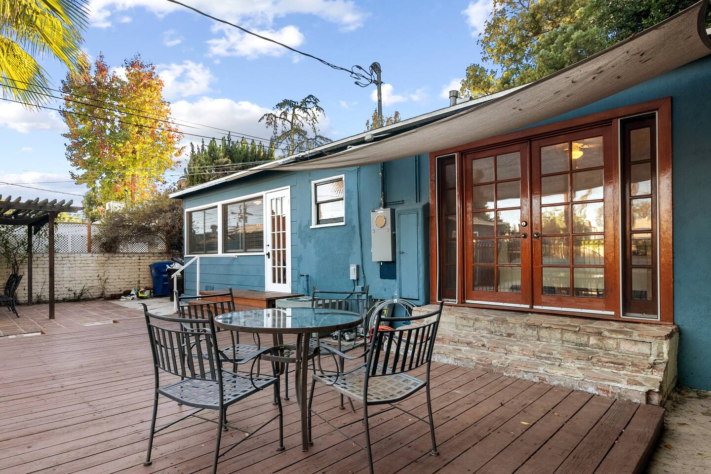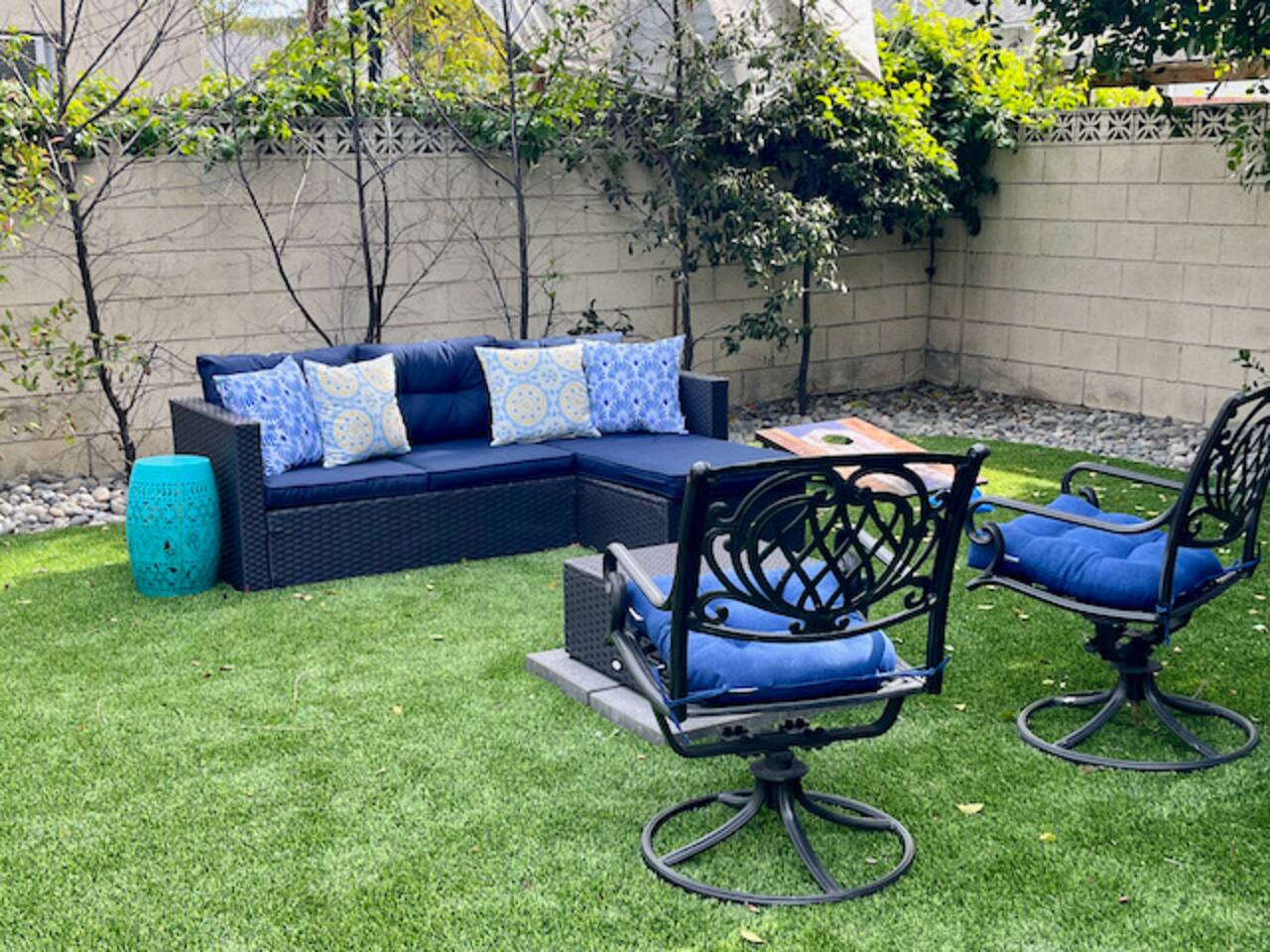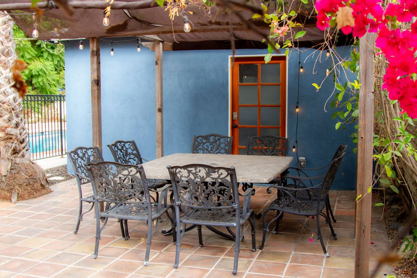 Relax. Connect. Have fun. This getaway features a separate game room with a full-sized pool table and games, a deck with an outdoor grill, and a private backyard with bean bag toss (located in the game room). This California Bungalow has 1,600 square feet of living space (1,200 square foot main house + 400 square foot game room), and is naturally bright with real hardwood floors, sunroom, updated kitchen, and bathrooms with vintage aqua and black tiles. Bedroom 1: King bed with private entrance to the deck and pool Bedroom 2: Queen bed Bedroom 3: Two twin beds Experience ultimate, snuggle comfort as all of the bedrooms have been recently upgraded with brand-new, top-of-the-line mattresses and microfiber bedding!! Fully equipped kitchen with breakfast bar Dishwasher, Oven, Microwave, and Stove Dining with seating for 5 (folding chair in the closet for 6) Outdoor dining area with seating for 8 Deck with outdoor gas grill or charcoal grill Private workspaces in the bedroom and in the game room. Outdoor seating lounge with beanbag toss. Large swimming pool with lounge chairs on sun deck Game room with pool table, vintage table-top Ms. Packman, Galaga, Dig Dug & more arcade games, 55-inch TV, sofa, and library Games, Books, Puzzles, Yo-Yo’s! Comfy reclining chair in the sunroom. Quiet reading/private time. High-Speed Wi-Fi & TV Central AC & Heating Washer/Dryer
