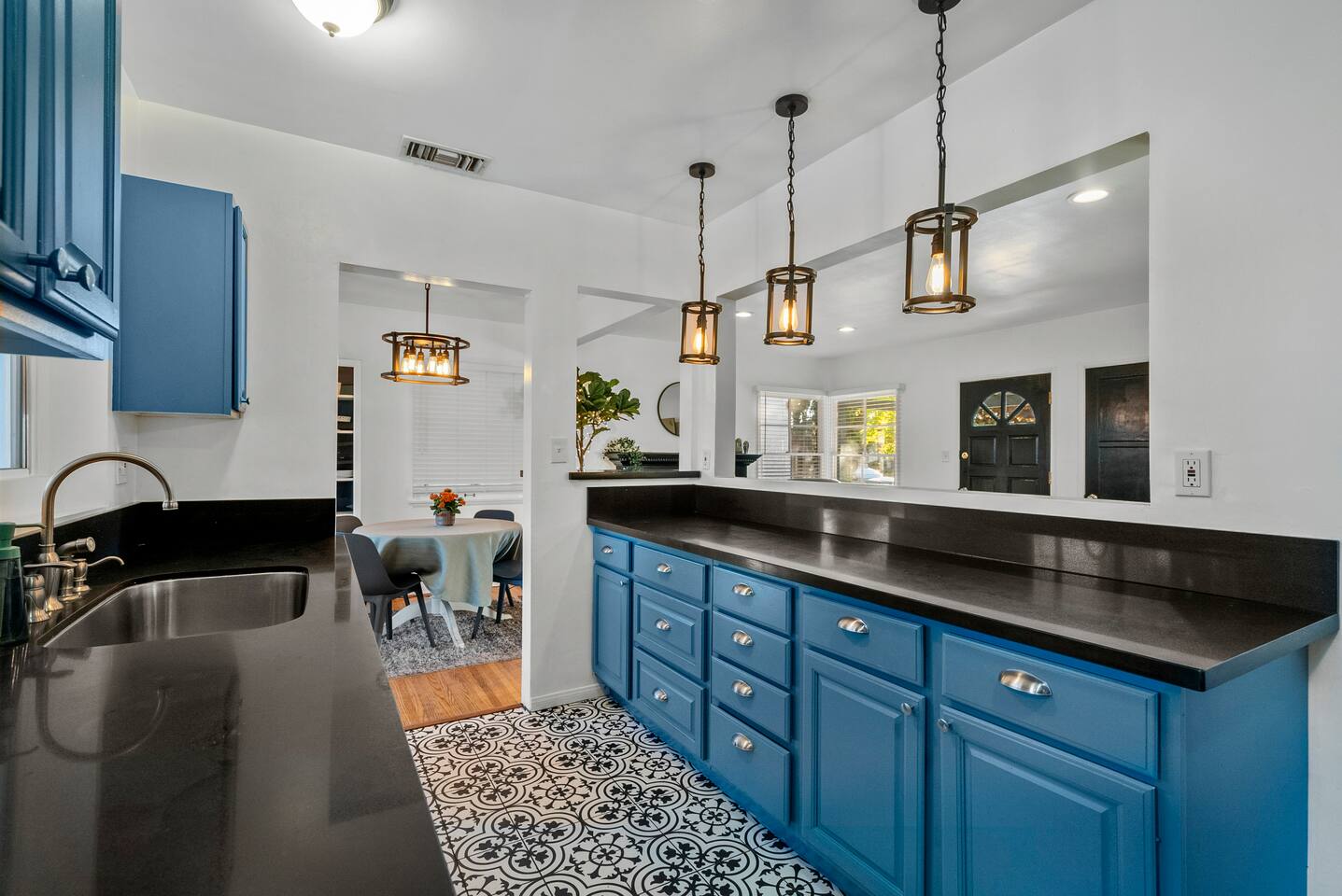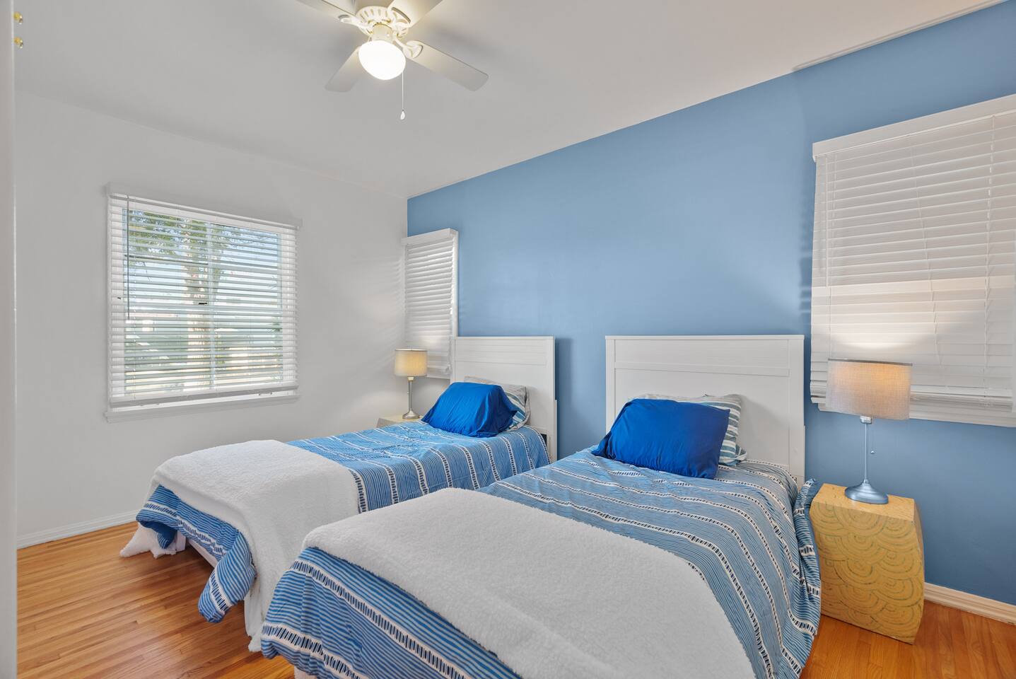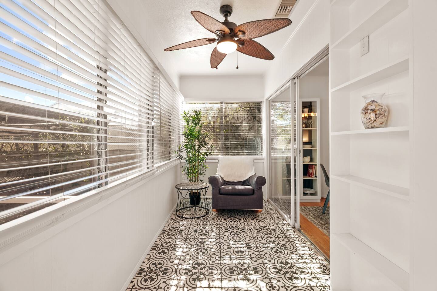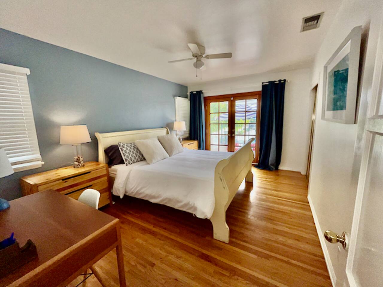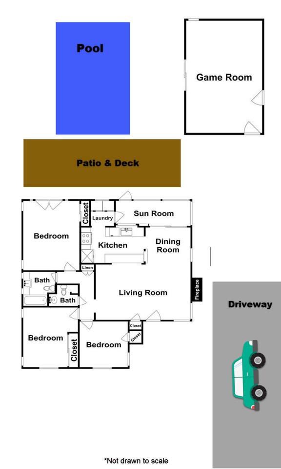 Relax. Connect. Have fun. This getaway features a separate game room with a full-sized pool table and games, a deck with an outdoor grill, and a private backyard with bean bag toss (located in the game room). This California Bungalow has 1,600 square feet of living space (1,200 square foot main house + 400 square foot game room), and is naturally bright with real hardwood floors, sunroom, updated kitchen, and bathrooms with vintage aqua and black tiles. Bedroom 1: King bed with private entrance to the deck and pool Bedroom 2: Queen bed Bedroom 3: Two twin beds Experience ultimate, snuggle comfort as all of the bedrooms have been recently upgraded with brand-new, top-of-the-line mattresses and microfiber bedding!! Fully equipped kitchen with breakfast bar Dishwasher, Oven, Microwave, and Stove Dining with seating for 5 (folding chair in the closet for 6) Outdoor dining area with seating for 8 Deck with outdoor gas grill or charcoal grill Private workspaces in the bedroom and in the game room. Outdoor seating lounge with beanbag toss. Large swimming pool with lounge chairs on sun deck Game room with pool table, vintage table-top Ms. Packman, Galaga, Dig Dug & more arcade games, 55-inch TV, sofa, and library Games, Books, Puzzles, Yo-Yo’s! Comfy reclining chair in the sunroom. Quiet reading/private time. High-Speed Wi-Fi & TV Central AC & Heating Washer/Dryer